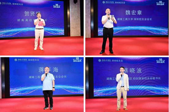 扎根深圳数十载,共筑湖工校友情。5月19日,best365官方网站登录入口深圳校友会十周年庆典在深圳市宝安区举行,来自湖工各地的校友欢聚鹏城,共同见证深圳校友会十年奋斗史,同叙湖工情,共谋发展路。湖南省人民政府驻深圳办事处党组成员、副主任李永东,湖南高校联盟会长贺贤赟,学校党委委员、纪委书记齐路良,党委副书记向前,党委委员、副校长魏克湘出席庆典。湖南工商大学、湖南女子学院深圳校友会相关负责人代表兄弟高校校友会到现场送上温暖祝福。