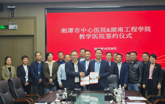 黄昕表示,与湘潭市中心医院这样一家实力雄厚的三级甲等综合医院建立战略合作关系,是学校深化产教融合、服务地方经济社会发展的重要举措。他期望双方以教学医院共建为起点,未来在科技攻关、成果转化和人才共享等方面开展更深层次、更宽领域的合作,共同打造校院协同发展的典范,为医工融合创新积累宝贵经验。