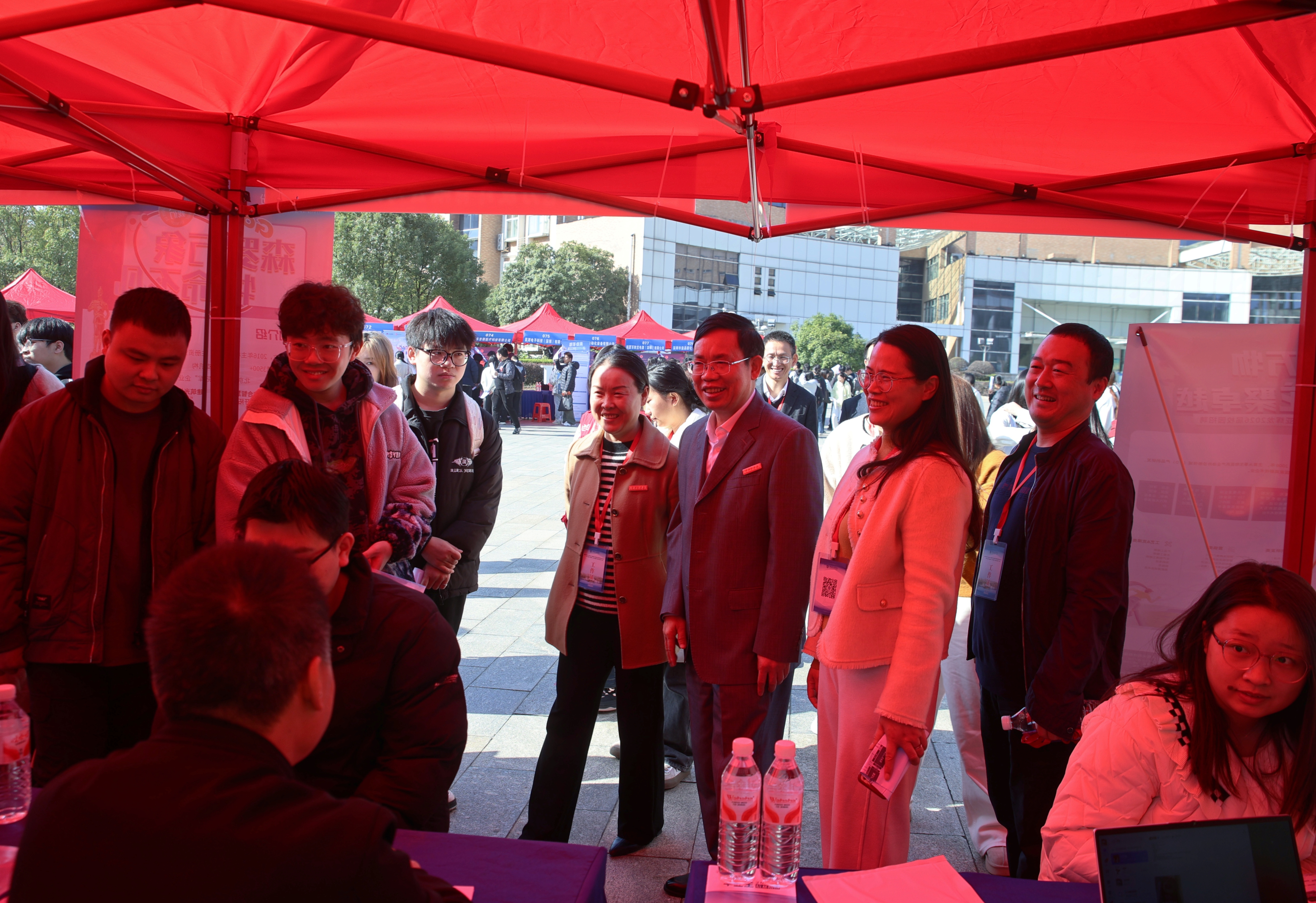 易兵在走访企业展区时指出,学校坚持以产业需求为导向,不断深化产教融合与校企合作,促进人才培养与岗位需求有效对接。他向江苏国瑞特空调设备有限公司、湖南亚辉龙生物科技有限公司等首次来校招聘的企业介绍了学校学科专业优势和人才培养特色,并对“能量加油站”“简历门诊”等服务形式表示肯定,鼓励就业工作团队持续打造特色服务品牌。