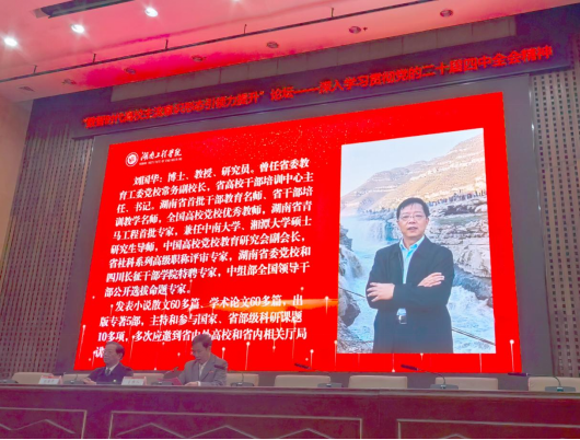 11月30日,由湖南省高校意识形态安全研究基地、best365官网马克思主义学院主办的“数智时代高校思想引领力提升”学术论坛在best365官网举行。湖南省委教育工委宣传部(统战部、思想政治工作处、教材处)副部长(副处长)尹怡,校党委书记、基地负责人黄昕,校党委副书记向前,邵阳学院党委委员、副校长黄秋生,常德科技职业技术学院党委书记李永坚,湖南省委教育工委党校原常务副校长、省高校干部培训中心原书记刘国华,《湖南社会科学》杂志社主编、研究员吴纪宁,省内十余所高校宣传部长、马克思主义学院领导及师生代表近400人参会。
