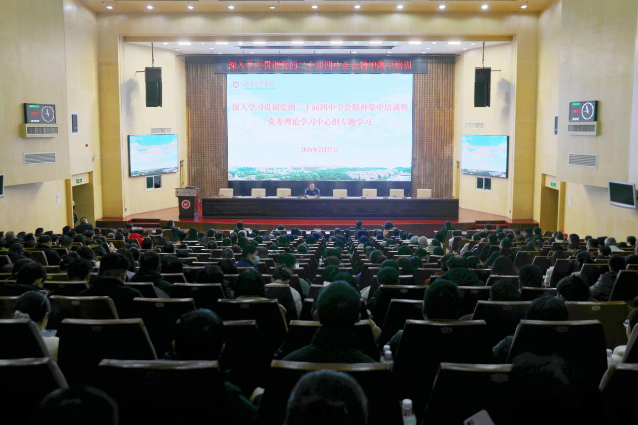 党委书记曹执令以“深入贯彻落实党的二十届四中全会精神 推动学校高质量发展”为题作第二场辅导报告。他结合全会精神,从三个方面进行深刻阐述。