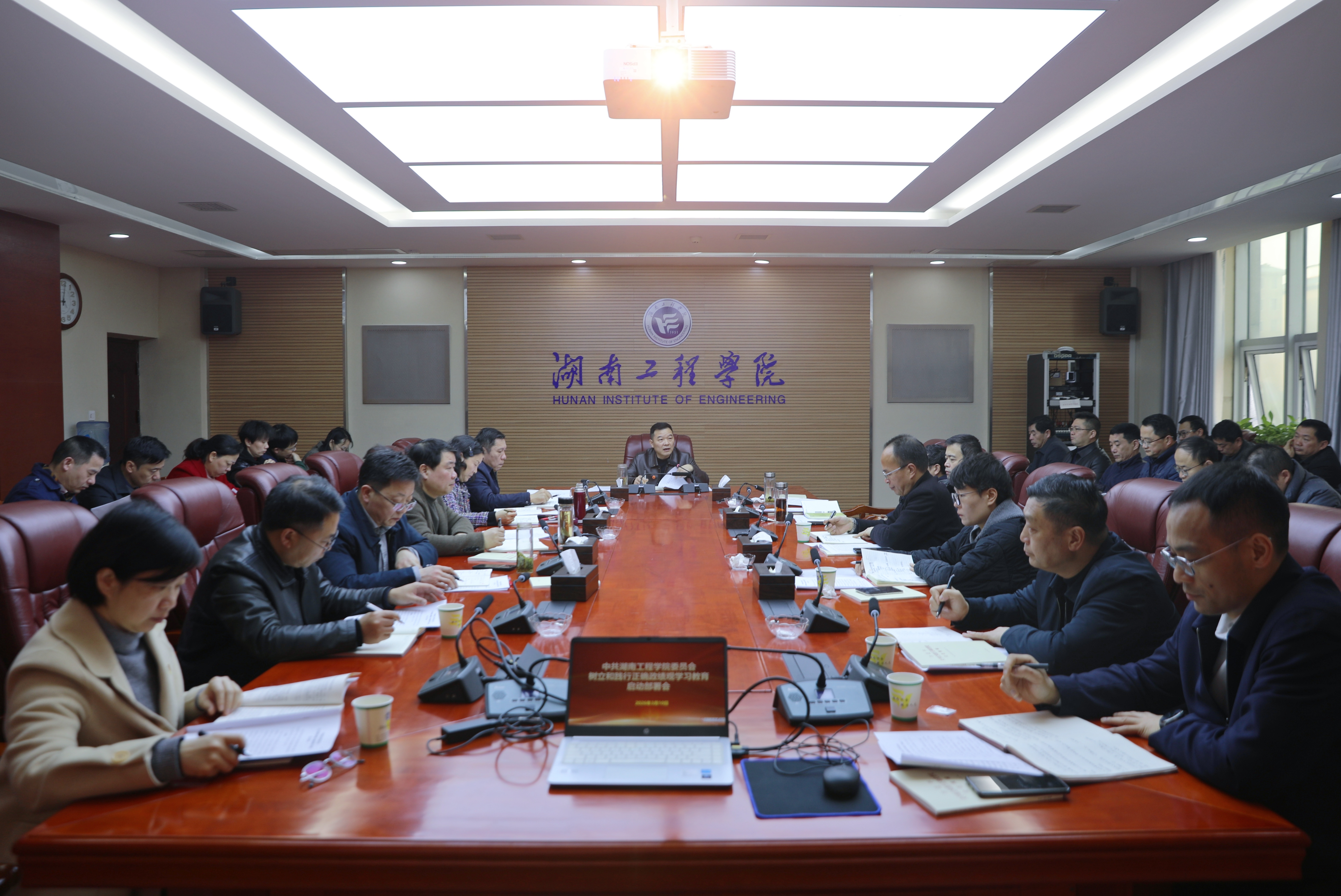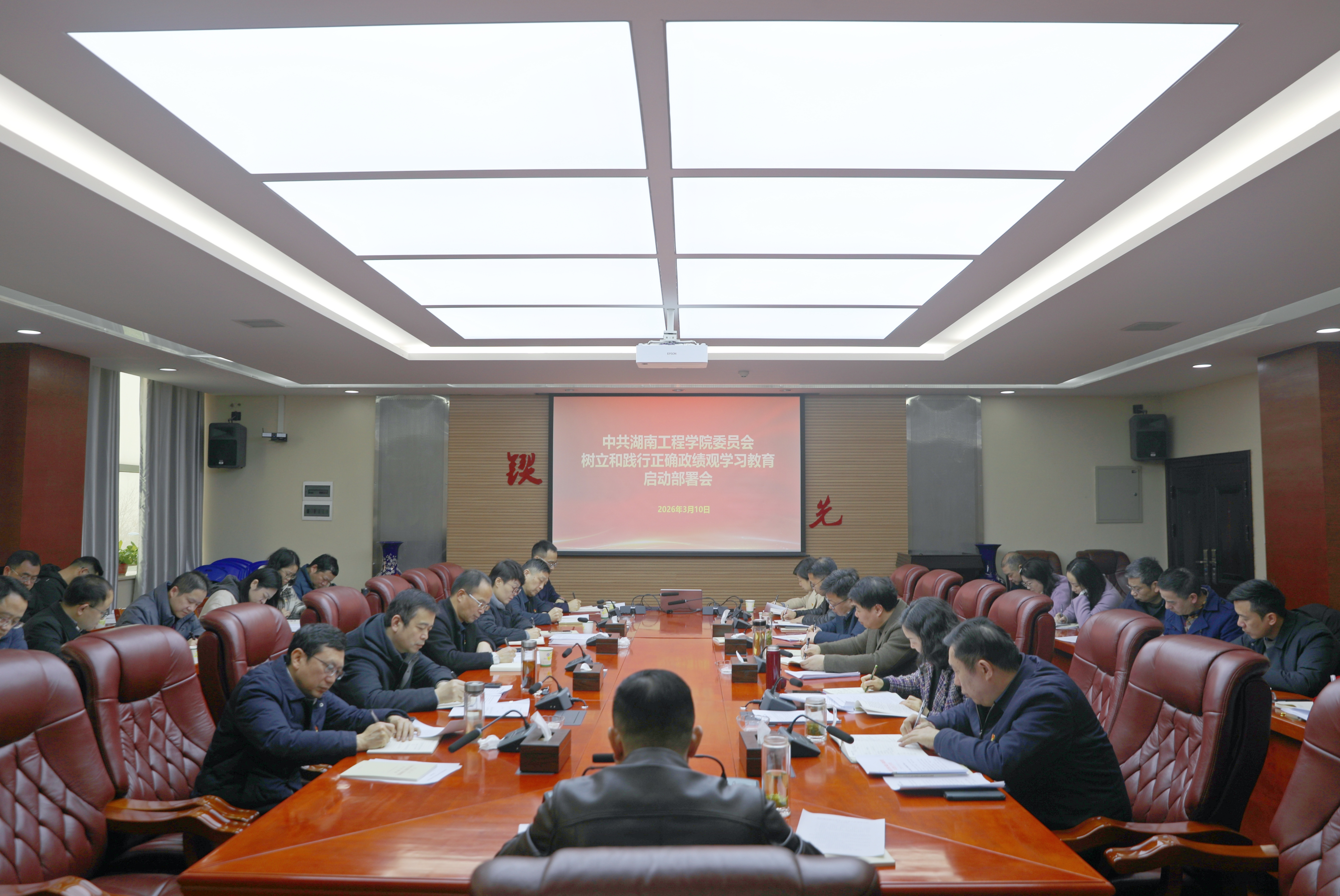 会议指出,要提高政治站位,深入学习贯彻习近平总书记关于树立和践行正确政绩观学习教育的重要讲话和重要指示精神,深刻领会开展树立和践行正确政绩观学习教育的重大意义。全体党员干部要深刻把握正确政绩观的核心要义与实践要求,深入思考、正确回答“政绩为谁而树、树什么样的政绩、靠什么树政绩”这一根本问题,确保学校各项工作始终服务于国家战略和全省发展大局,始终服务于湖工师生的根本利益与热切期盼。