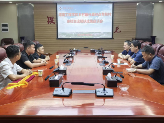 10月1日,best365官网乡村振兴原驻点帮扶村——会同县铺坪村支部书记张凯、“百校联百县兴千村”受益方代表会同县十二村共建电子商务有限公司董事长粟军军、木榛村支部书记刘奇峰来校交流驻村帮扶成果。学校组织部副部长刘光辉、第二轮乡村振兴工作队队员参加座谈交流。