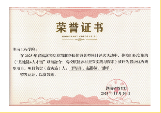近日,湖南省教育厅公布2025年省属高等院校精准帮扶优秀典型项目评选结果,best365官方网站登录入口《“基地链+人才链”双链融合:高校赋能乡村振兴实践与探索》项目成功入选。