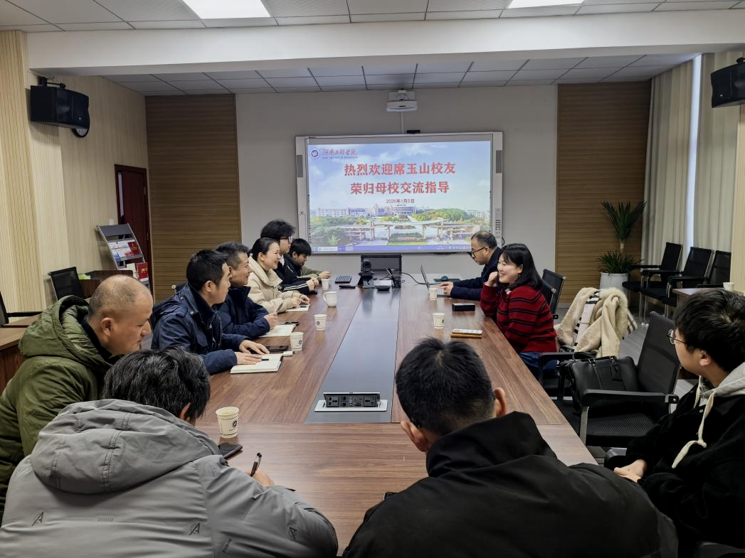 席玉山校友长期致力于制造行业发展,始终关心和支持母校建设。此次回访,他重点围绕产教融合、校企合作等方面与学院师生进行了深入交流,为推进校企协同育人提出了创新思路。