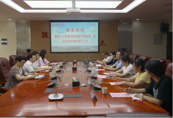 7月6日下午,湖南人文科技学院党委委员、副校长陈志国一行来best365官网调研,校党委书记陈岳堂,党委委员、副校长向前在二会议室接待来宾。