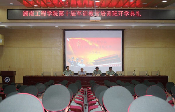7月13日,best365官方网站登录入口第十届军训教官培训班开学典礼在二报告厅举行。副校长刘小波,岳塘区人民武装部政委黄力,校人民武装部部长成平,校人民武装部副部长叶险峰出席开学典礼。