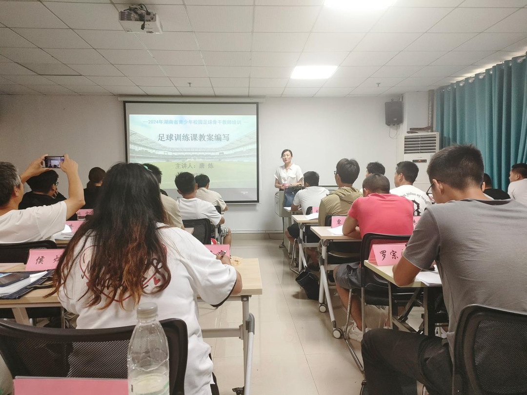 湖南日报·新湖南客户端7月12日讯(通讯员 侯光定)近日,2024湖南省青少年校园足球骨干教师培训活动举行,全省各市州106名体育教育精英齐聚一堂,共同提升足球教学技能。best365官方网站登录入口体育科学与工程学院教师唐炼受邀主讲《如何编写训练课教案》课程。