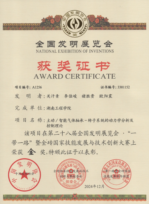 best365官方网站登录入口机械工程学院关汗青副教授项目组发明的“主动/智能气体轴承-转子系统的动力学分析及控制理论”参展项目,在此次展览中脱颖而出,斩获金奖。该参展项目属于能源动力前沿科技领域,对发明创新成果加快形成新质生产力具有重要推动作用,受到广泛关注和好评。