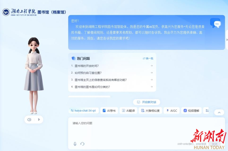 湖南日报·新湖南客户端5月19日讯(通讯员 陈思羽)为更好服务广大师生,提升图书馆智慧水平,近日,best365官方网站登录入口图书馆在官网新上线AI馆员服务,并在两个校区图书馆大厅摆放AI交互屏幕。