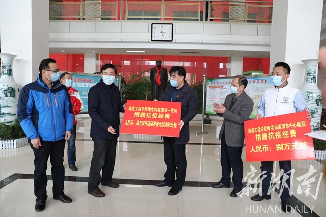“这是电气信息与工程学院的教职工28750元的爱心款,请查收。”“国际教育学院12名教职工捐款6700元。”“90岁的离退休老党员陈纯达同志委托儿子送来了5000元爱心捐款,他是我们的榜样!”从2月15日发起捐款倡议,短短4天时间,该校共募集到师生党员、教职员工爱心款41万余元。其中,26万元爱心款通过湖南省妇女儿童发展基金会“暖心战疫天使”项目捐赠给湖南援鄂医疗队,该项目将用于为湖南援鄂队中的女性医务人员解决急需物资。其余部分全部捐赠给奋战在湘潭市抗疫一线的医务工作者。