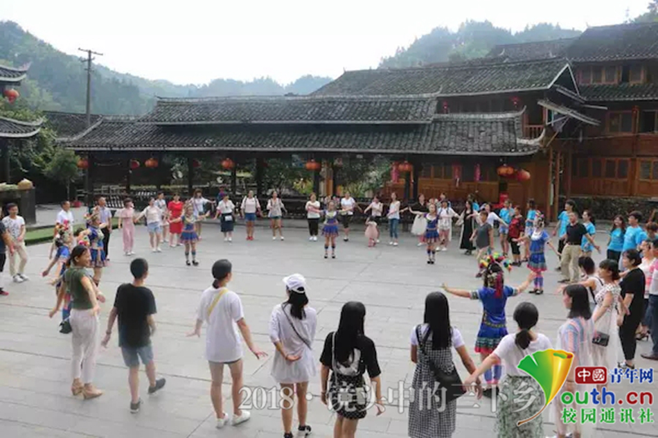 最后,苗寨阿妹热情洋溢,主动邀请志愿者们一起共舞。中国青年网通讯员 吴其双 摄
