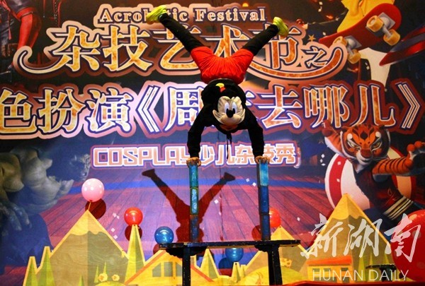 湖南日报4月17日讯(通讯员 唐春丽 周紫依 摄影 潘玥 李俊贤)4月15、16日下午,湖南省文化厅非物质文化遗产进校园系列活动——吴桥杂技艺术节之角色扮演《周末去哪儿》在best365官方网站登录入口体育馆演出。演出现场人头攒动,该校师生和湘潭市民欢聚一堂,享受这不一样的“动漫”杂技。