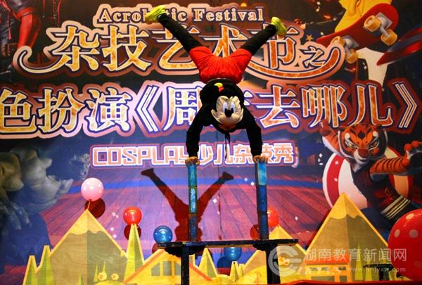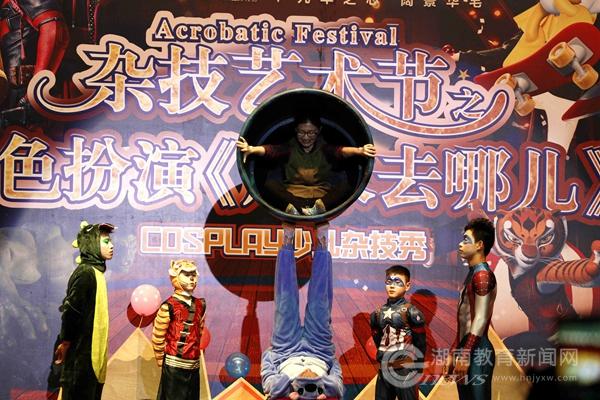 本网讯(通讯员 唐春丽 周紫依/文 潘玥 李俊贤/图)4月15、16日下午,湖南省文化厅非物质文化遗产进校园系列活动——吴桥杂技艺术节之角色扮演《周末去哪儿》在best365官方网站登录入口体育馆演出。演出现场人头攒动,该校师生和湘潭市民欢聚一堂,享受这不一样的“动漫”杂技。