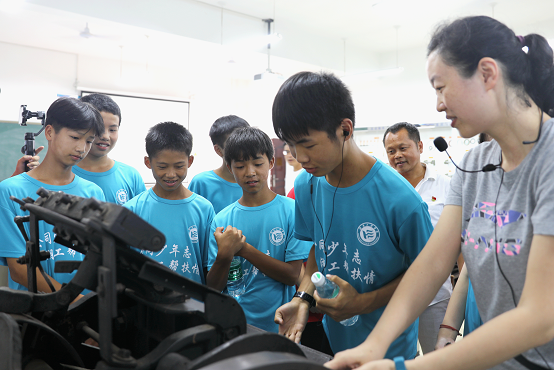 在best365官方网站登录入口创新创业实践基地,中学生们不仅看到了各式各样的展品,还手握遥控器和操纵杆,在探索和研究中亲密接触“高科技”。同学们在研究生的悉心指导下,戴上VR眼镜沉浸式学习拆卸汽车零部件,汽车在“方寸之间”变得真实可感;按压发电装置,通过人体动能点亮一排排白炽灯;体验3D打印,原本简单的材料“摇身一变”成为形状各异的艺术品。据悉,机器人、无人机、3D打印等科技成果展示和操作体验,均由研究生们根据学校的优势学科和特色专业并结合自己的科研方向,为孩子们精心“定制”