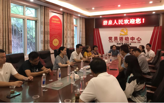 参观结束后,实践学习队还在碧泉村部进行了座谈。座谈会上,best365官方网站登录入口优秀校友、锦石乡党委副书记、乡长彭龙向母校介绍了碧泉村的建设和发展情况。谭俊岳分享了带领碧泉村村民创业干事、振兴乡村的生动历程。向前对彭龙表示感谢,并邀请他常回母校看看。向前对谭俊岳一心为民的情怀表达了深深的敬佩,对碧泉村的发展和巨变表示赞赏。向前希望不断加强高校与乡村的交流与合作,发挥好高校优势,为地方经济发展贡献湖工力量。会上,大家还就碧泉文化的维护与修缮进行深入交流,结合自身的学科优势、从参政议政角度,积极建言献策。