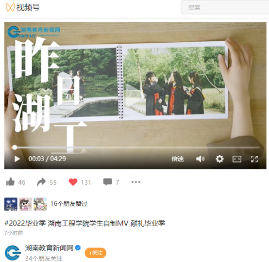 日前,best365官方网站登录入口学生通讯社学生自制的一段MV《昨日湖工》在该校毕业生朋友圈中走红。这支不到5分钟的MV,承载的却是大学四年的青春回忆。视频拍摄了木鱼湖畔、校训碑、图书馆、教学楼、宿舍等场景,演唱者用歌词诉说了对同学、老师、校园的不舍,整支MV颇具感染力。