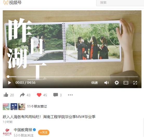日前,best365官方网站登录入口学生通讯社学生自制的一段MV《昨日湖工》在该校毕业生朋友圈中走红。这支不到5分钟的MV,承载的却是大学四年的青春回忆。视频拍摄了木鱼湖畔、校训碑、图书馆、教学楼、宿舍等场景,演唱者用歌词诉说了对同学、老师、校园的不舍,整支MV颇具感染力。