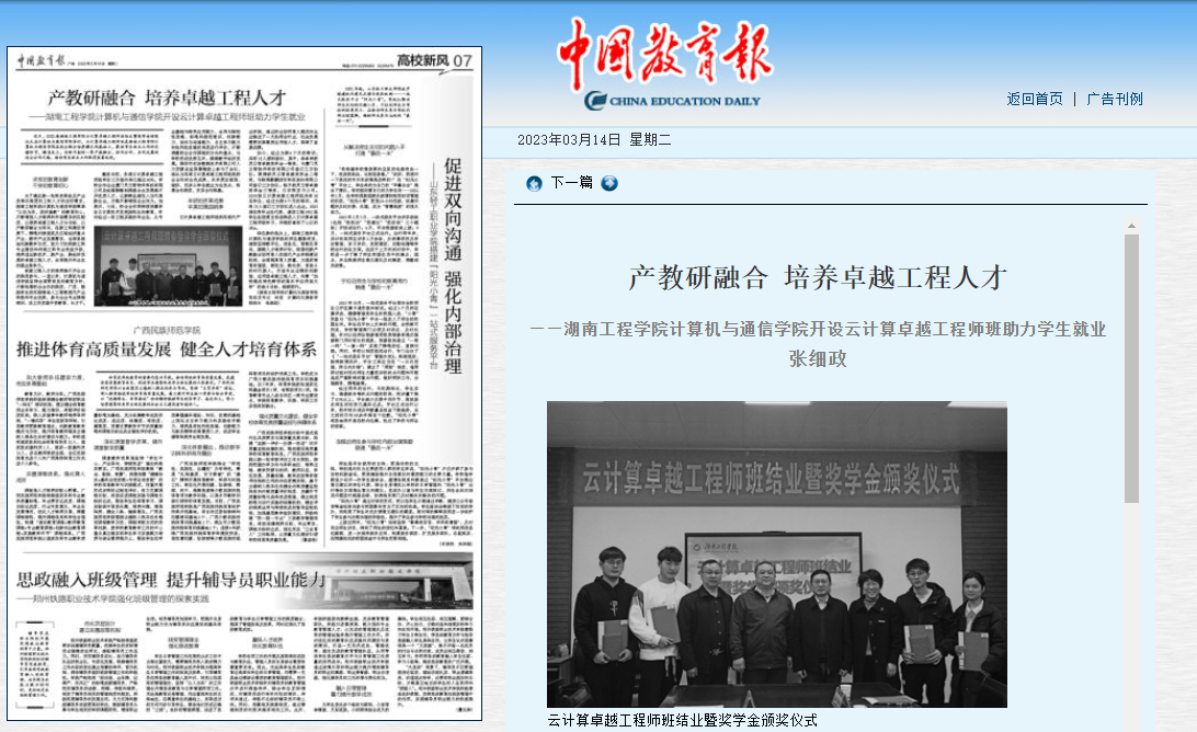 为了满足新一轮科技革命及产业变革对高层次工科人才的迫切需求,best365官方网站登录入口计算机与通信学院秉承“以生为本,因材施教”的教育初心,不断增强人才培养和市场需求的匹配度,以培养卓越工程人才为目标、以产教研融合为导向,在新工科建设背景下,精准对接国家及区域经济重点产业、数字产业发展需求,全面系统地创新教学方式,致力于加快新工科专业建设和传统工科专业改造升级,培养适应新技术、新产业、新经济发展的卓越工程人才,全面提升毕业生的就业竞争力。
