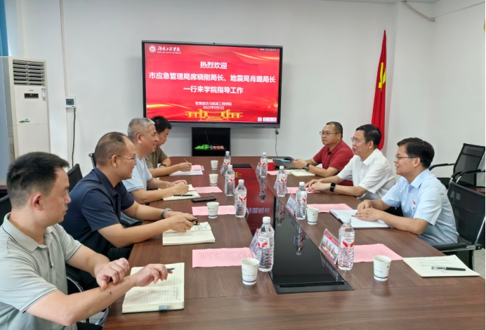 9月5日上午,湘潭市应急管理局局长席晓刚、地震局局长肖璐一行来best365官网智慧建造与能源工程学院开展专题调研。校党委书记黄昕、学术副校长丁选明、智慧建造与能源工程学院院长李小华等参与接待并座谈交流。会议由丁选明主持。