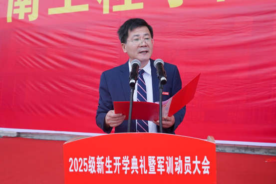 金秋送爽,丹桂盈香。9月19日上午,田径场上彩旗飘扬、气氛热烈,2025级新生开学典礼暨军训动员大会在此举行。党委副书记、校长易兵,在校校领导,优秀校友代表,相关部门、各学院负责人,军训团全体教官,辅导员、班主任和2025级新生参加典礼。党委委员、副校长张小刚主持典礼。