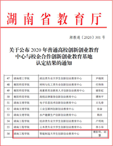 认定校级精品在线开放课程2门,认定省级一流本科课程4门;主编出版教材3部:《工程训练—金工实习》《金工与先进制造实习》和《电路分析简明教程》(第三版);2019年《项目驱动与科技创新相结合的工程训练模块化教学改革与实践》获省级教学成果二等奖、校级教学成果一等奖。构建“一梁、二核、四融合”的工程训练新模式下的创新创业教育体系,2020年获批湖南省普通高校创新创业教育中心——智能制造大学生创新创业教育中心。