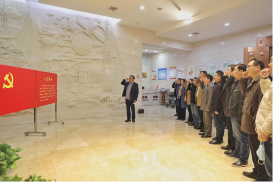 进入党史馆,展标“领航——中国共产党湘潭历史陈列”,在灯光的照射下熠熠生辉,以毛泽东为首的湘潭共产党员先驱的雕像,让人肃然起敬。党委书记陈岳堂带领大家面向党旗,整齐列队,举起右拳,一字一句重温铮铮誓言。大家用铿锵有力的声音进一步坚定理想信念,牢记共产党人的初心和使命。