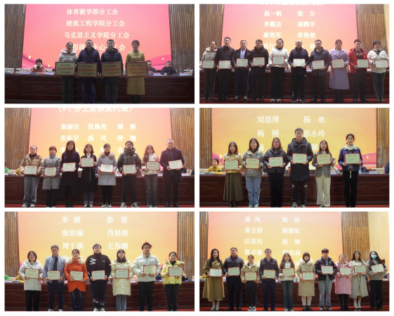 大会表彰了2023-2024年度湖南省“巾帼建功标兵”best365官网电气与信息工程学院院长万琴、2023年“玫瑰书香 湘阅芳华”全省女职工主题阅读典型成果、湘潭市妇女工作和家庭建设先进个人、2022-2023年度优秀工会集体与个人、2023年“弘扬教育家精神 勇担新时代教育使命”征文奖获得者。33个先进集体与团组及206名先进个人受到表彰。