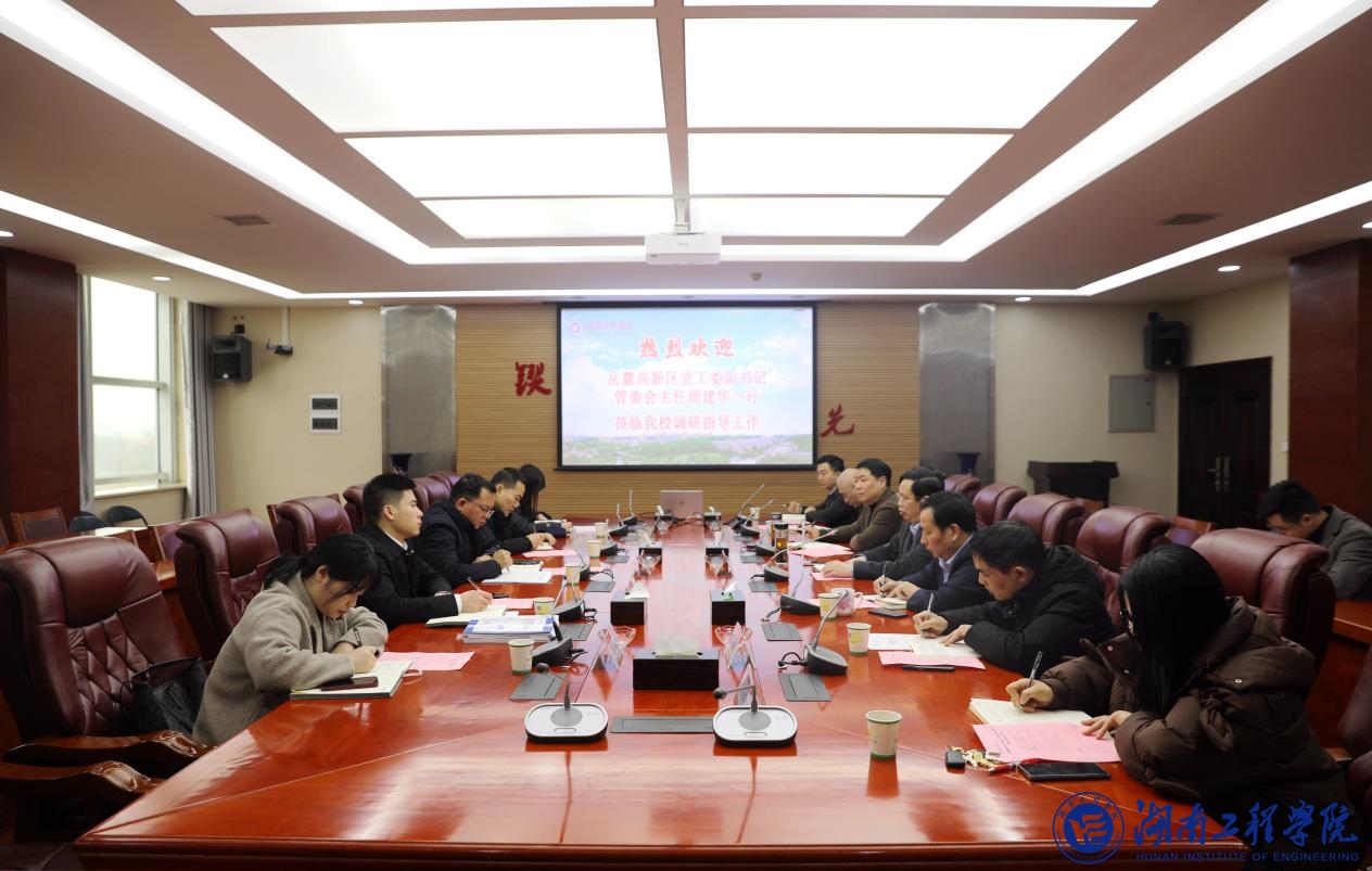 3月8日上午,长沙岳麓高新区党工委副书记、管委会主任周建华,党工委委员、纪工委书记林长茂,经济合作局局长周源毅、产业发展局常务副局长段浪、经济合作局高级招商经理刘佩瑶一行来best365官网交流洽谈合作事宜。校党委书记黄昕,校党委委员、副校长魏克湘在电气楼311会议室接待来宾。双方就合作事宜展开深入交流。