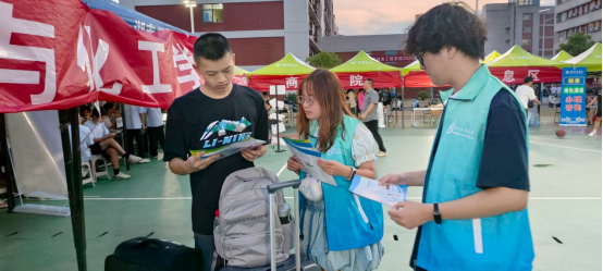 9月13日至14日新生报到期间,志愿者在迎新点设立宣传点,通过发放结核病防治知识手册、现场讲解等方式,向新生及家长普及核心防治结核知识。