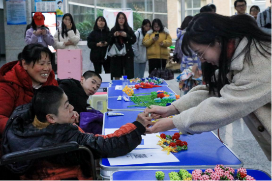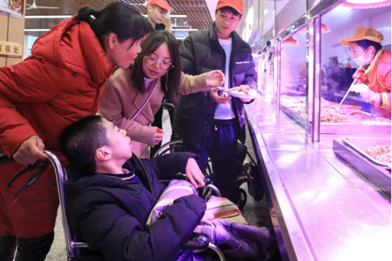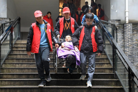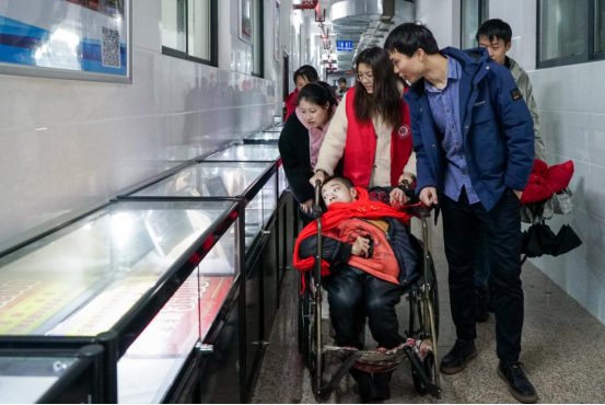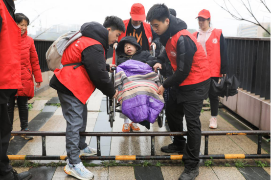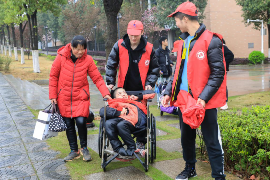 3月5日上午,best365官方网站登录入口。一群穿着红马甲的学生志愿者分别推着两个轮椅,“我们学校的花都开了,带你们来看看。”“真美!”志愿者们和轮椅上的两兄弟交谈,笑得比花还灿烂。