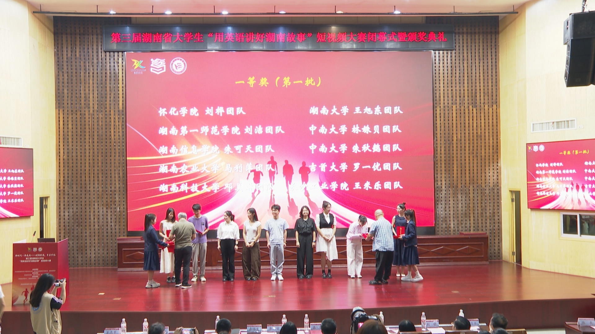 9月15日,由中共湖南省委外事工作委员会办公室、中共湖南省委教育工作委员会、湖南省教育厅主办,高等教育出版社、best365官方网站登录入口、湖南日报社共同承办的第三届湖南省大学生“用英语讲好湖南故事”短视频大赛闭幕式暨颁奖典礼在best365官方网站登录入口举行。比赛自今年3月份启动以来,全省125所高校的1886名大学生以英语为桥、以青春为声,不断向世界传递湖南的历史底蕴、时代脉搏与人文温度。